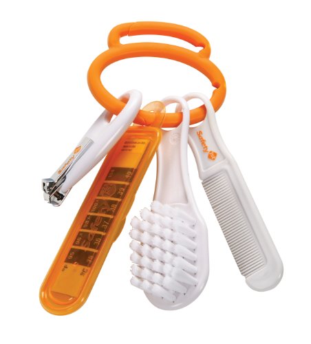 - Includes: nail clippers, comb, brush, 3 reusable forehead thermometer strips